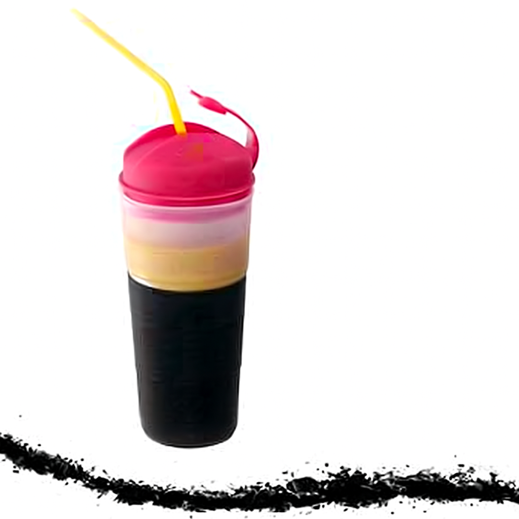 Σέικερ πλαστικό με καλαμάκι και ροζ καπάκι